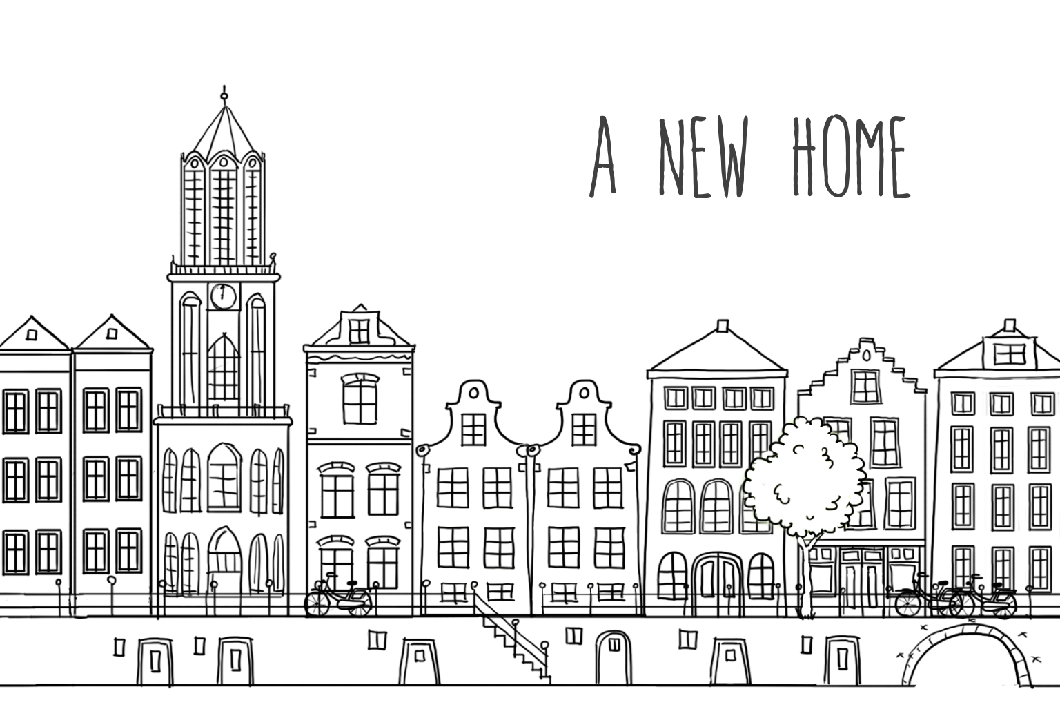Verhuiskaart rij hollandse huisjes Utrecht. (3018)