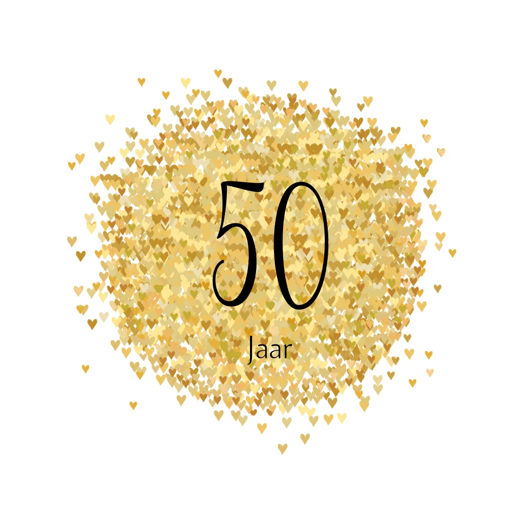 Chique trendy uitnodiging 50 jaar verjaardag met hartjes in goudkleur