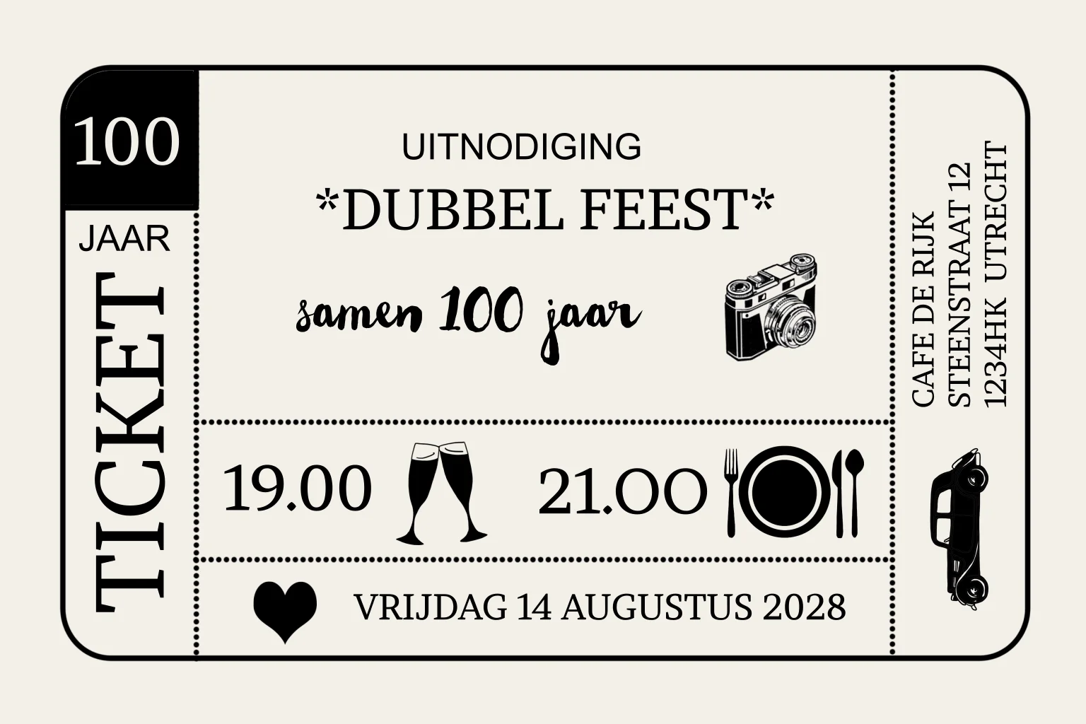 Verjaardagsuitnodiging dubbel feest samen 100 jaar als ticket
