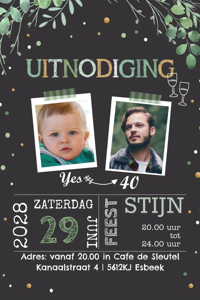 Uitnodiging feestje 40e verjaardag krijt bord tekst groen