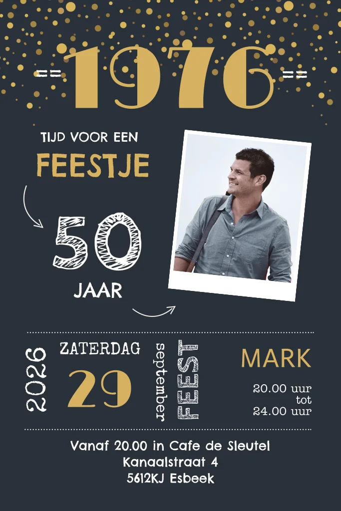 Uitnodiging 50 jaar verjaardag krijtbord recht 1976