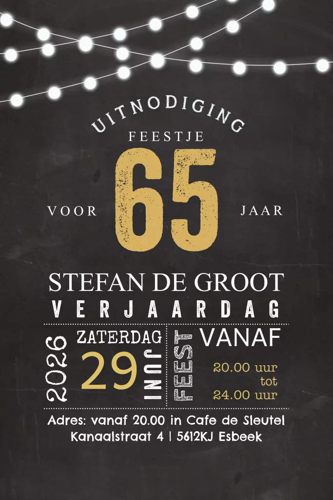 Verjaardagsuitnodiging 65e verjaardag krijtbord staand enkel
