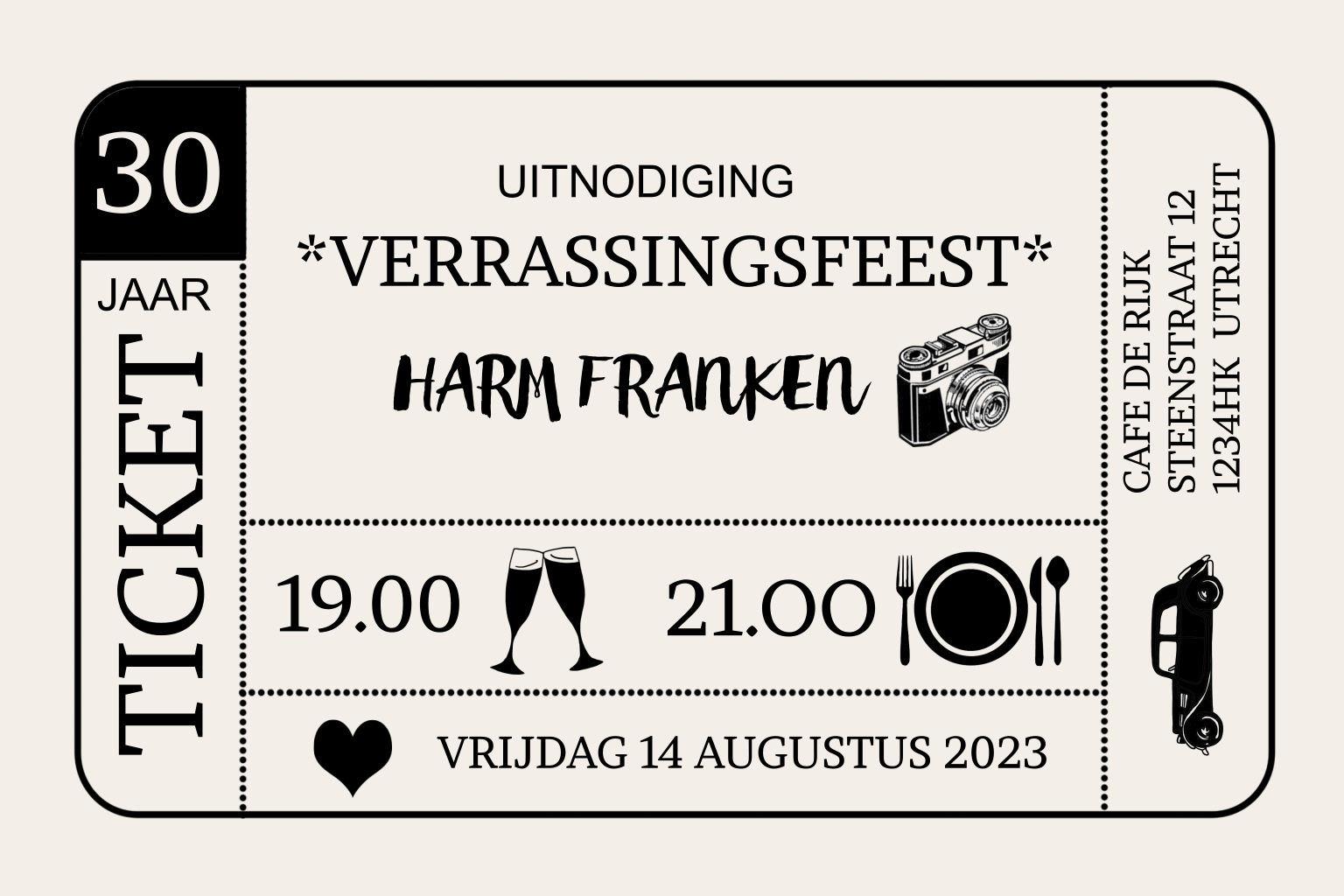 Verrassingsfeest uitnodiging 30 jaar als ticket