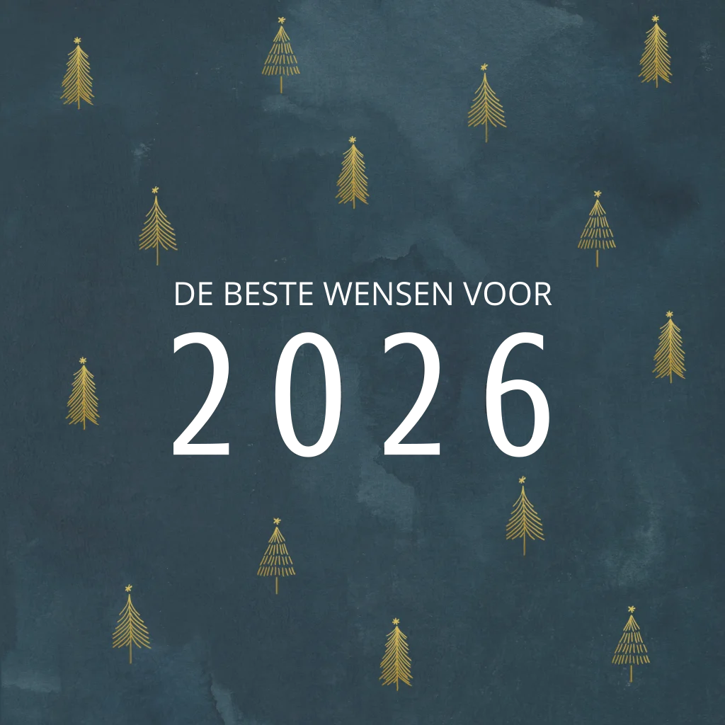 Zakelijke kerstkaart boompjes met goudfolie tekst