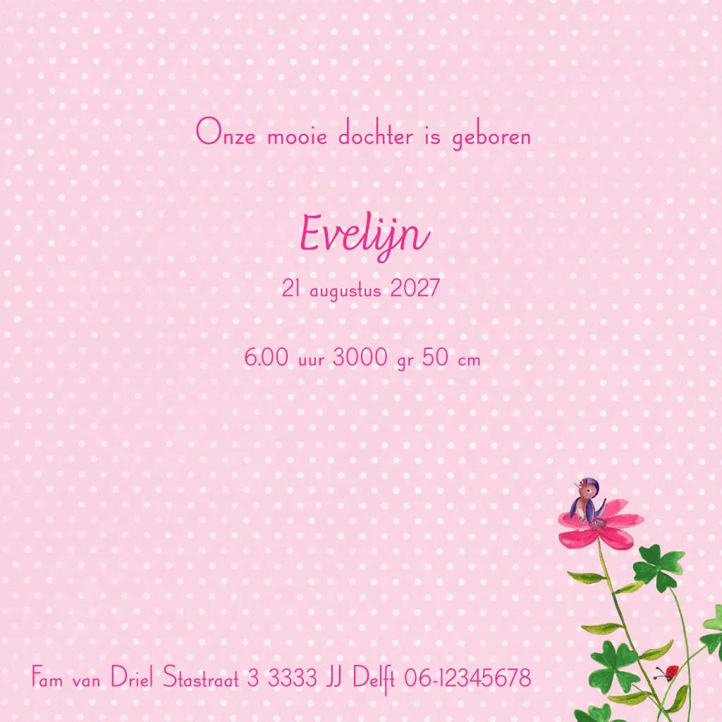 Geboortekaartje meisje met houten planken en boom met bloemen
