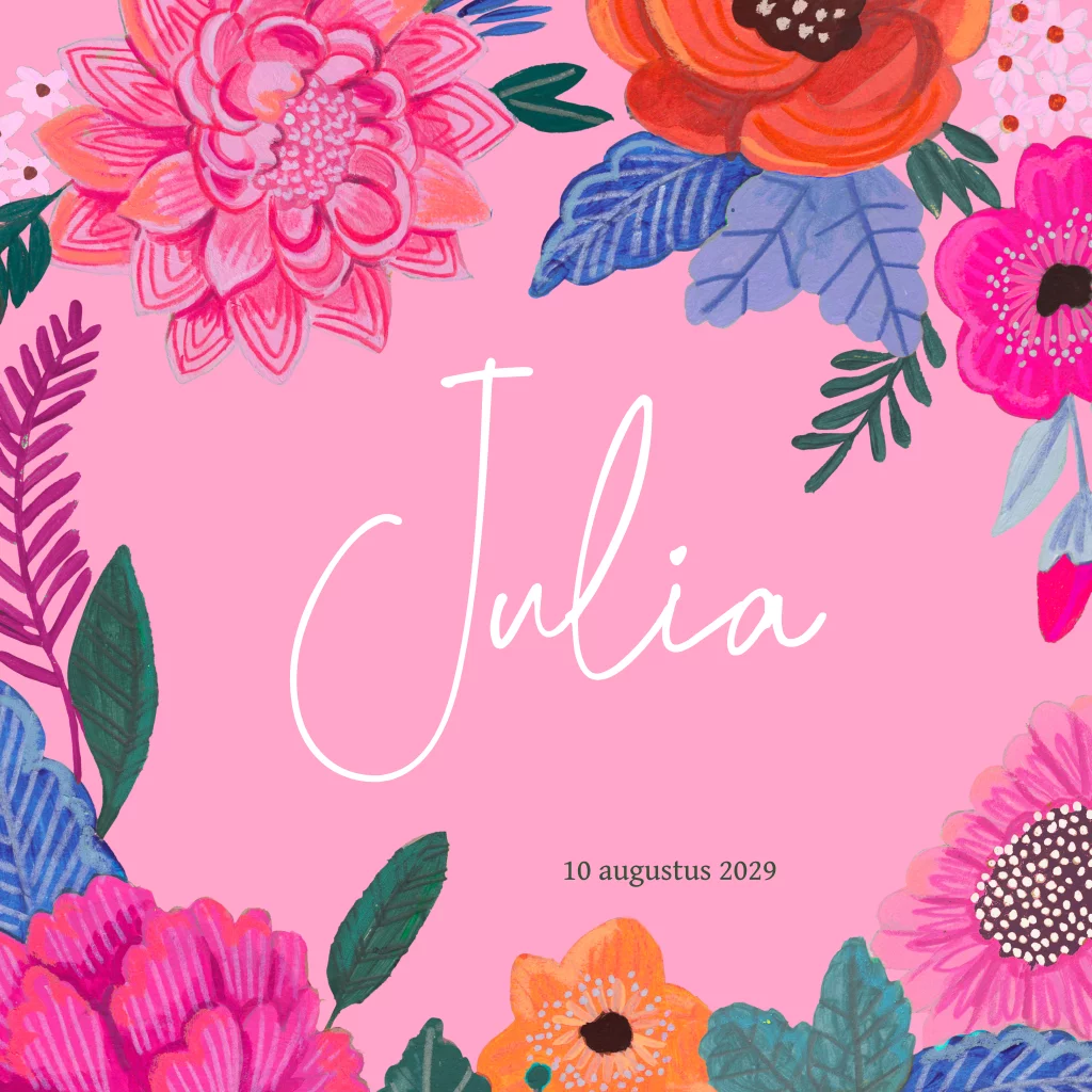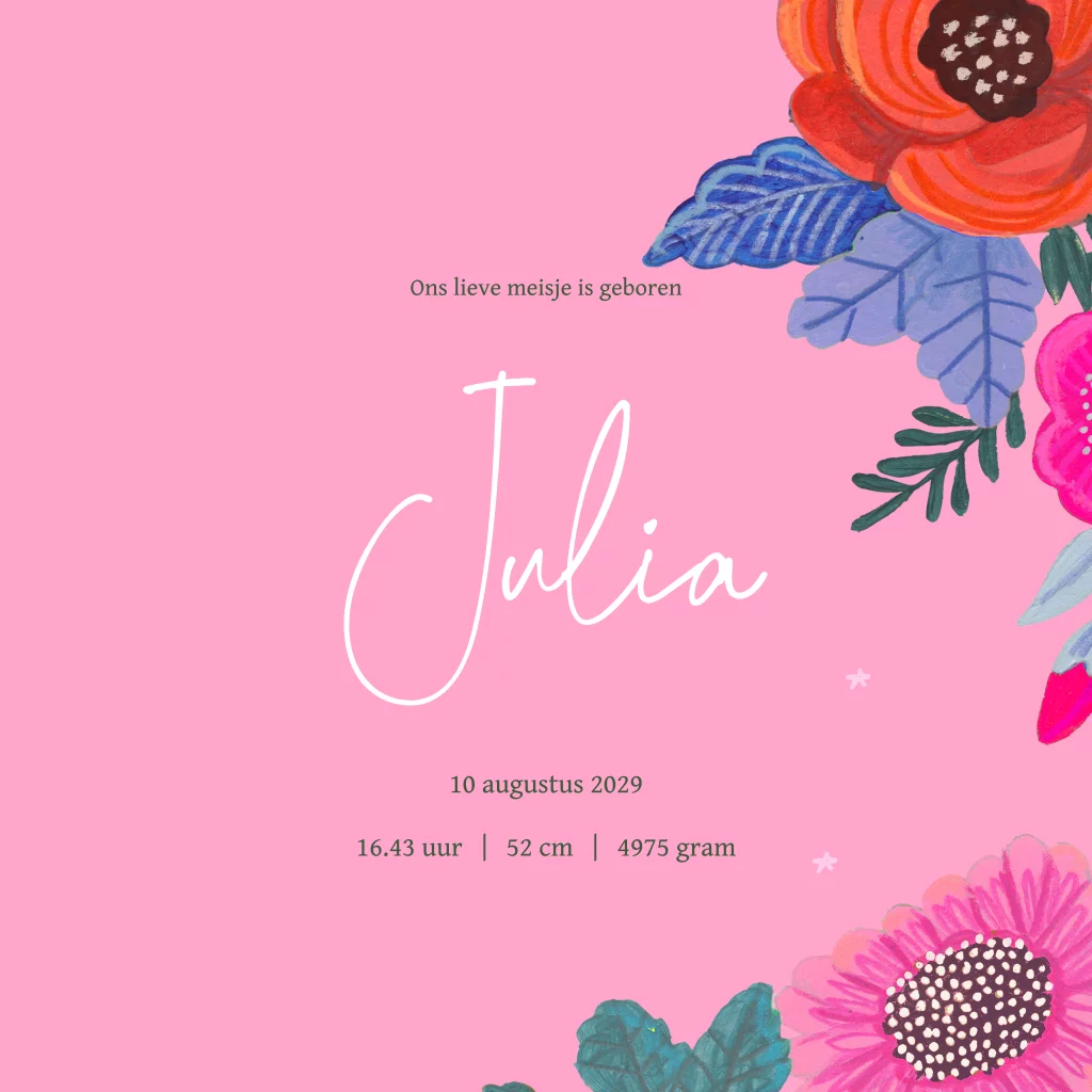 Geboortekaartje voor een meisje met kleurrijke bloemen