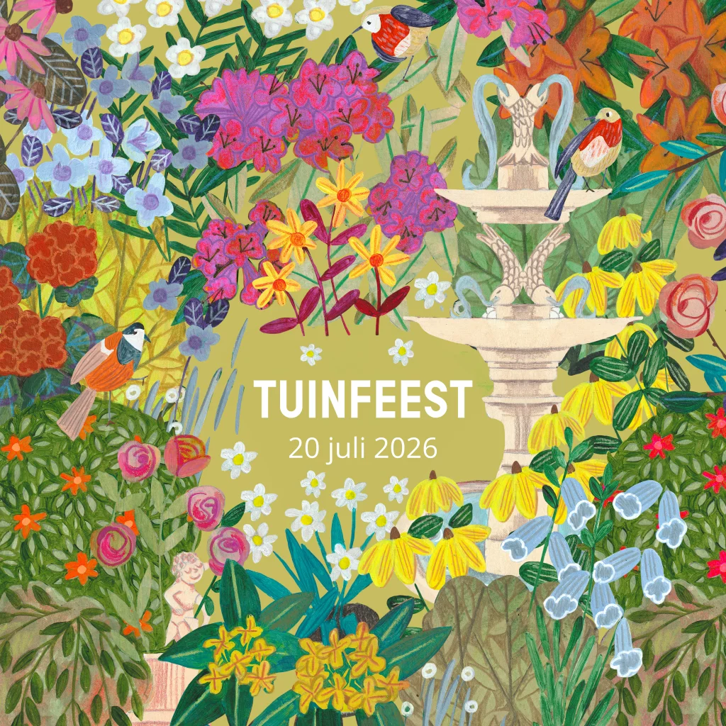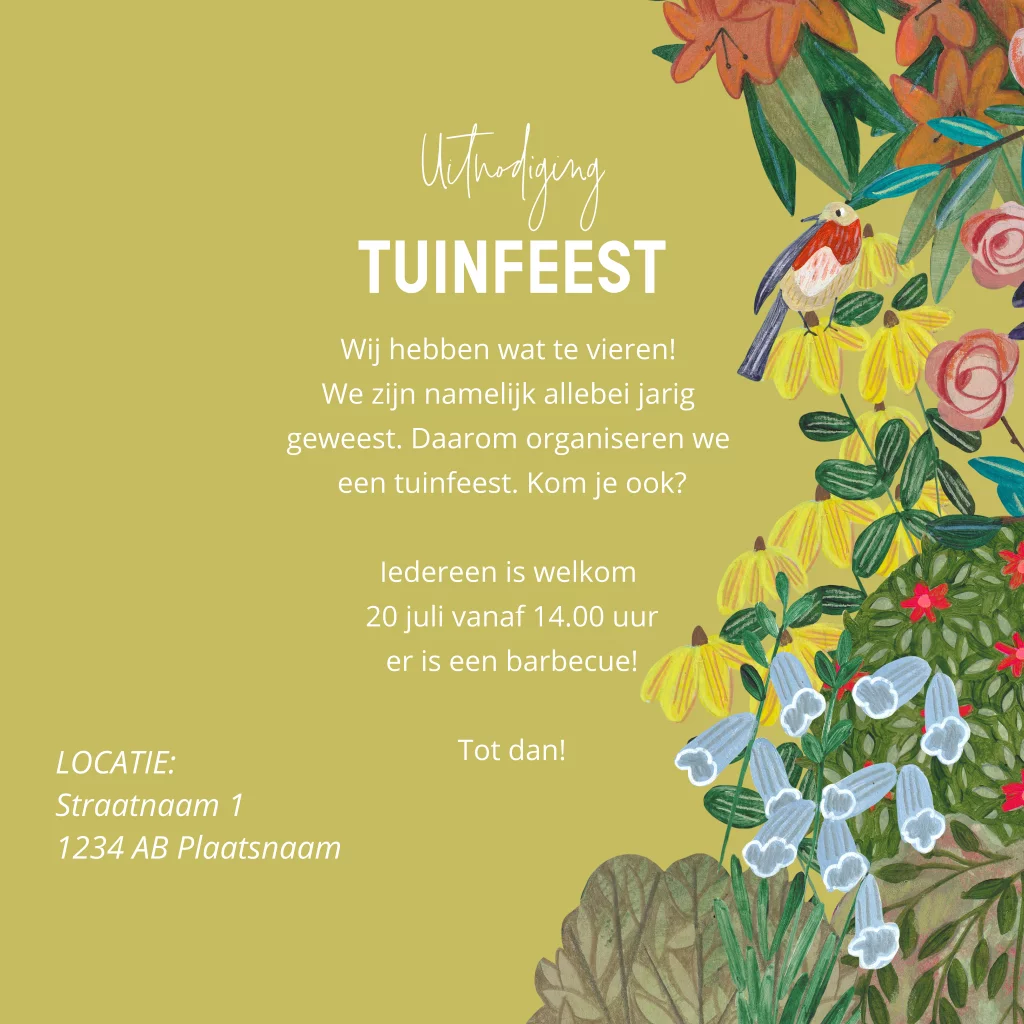 Een prachtig geïllustreerde bloementuin om je vrienden voor een tuinfeest uit te nodigen. (24143)