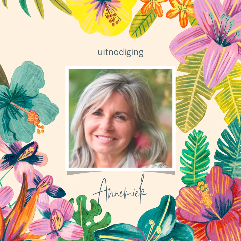 Uitnodiging 60 jaar feestje met foto en tropische bloemen