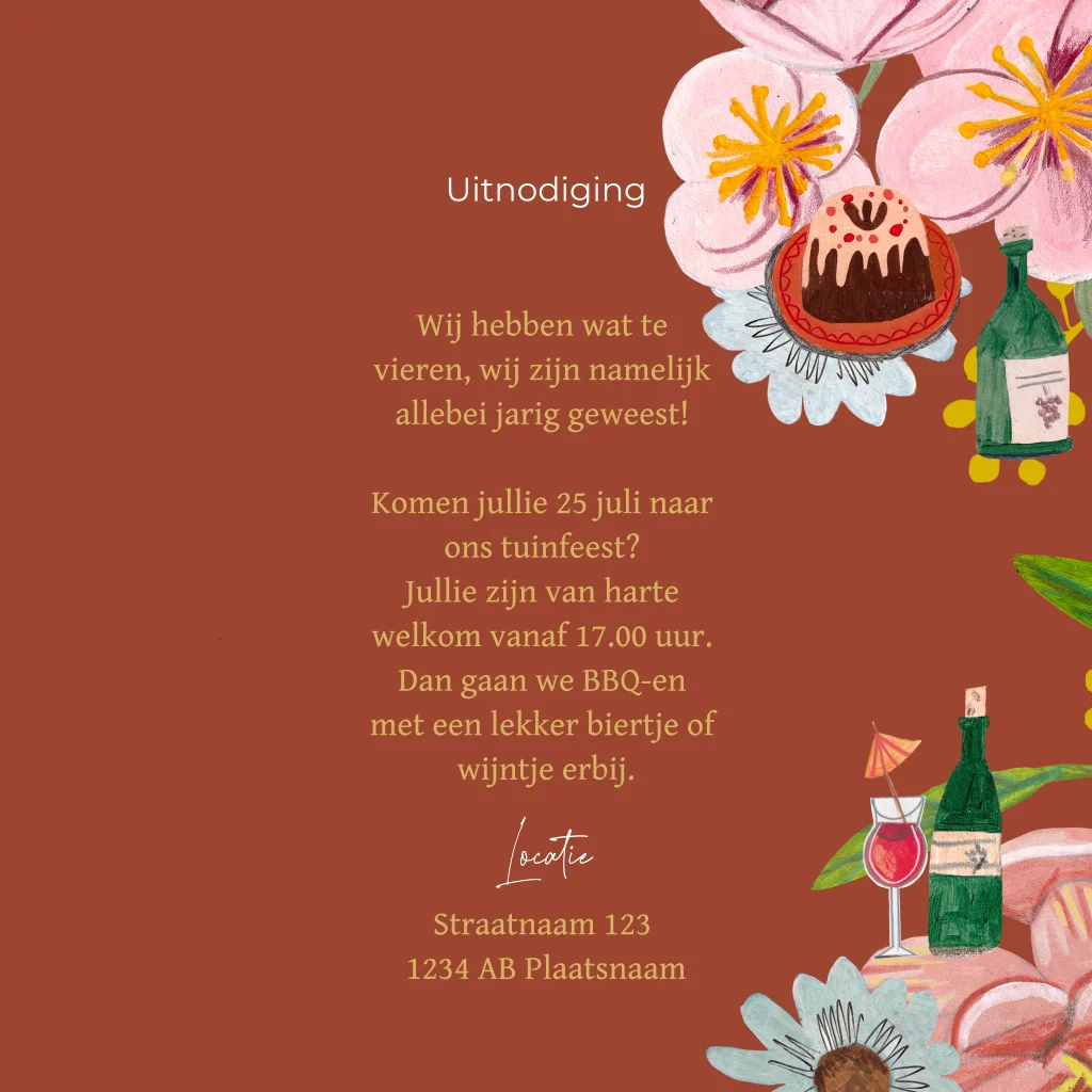 Uitnodiging voor en verjaardag feestje of etentje Wine en Dine