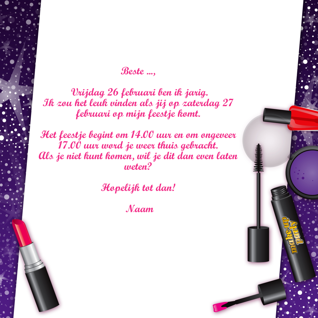 Uitnodigingskaartje feest met make-up
