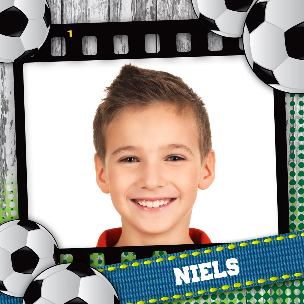 Fotokaart uitnodiging met voetbal thema kinderfeestje jongen