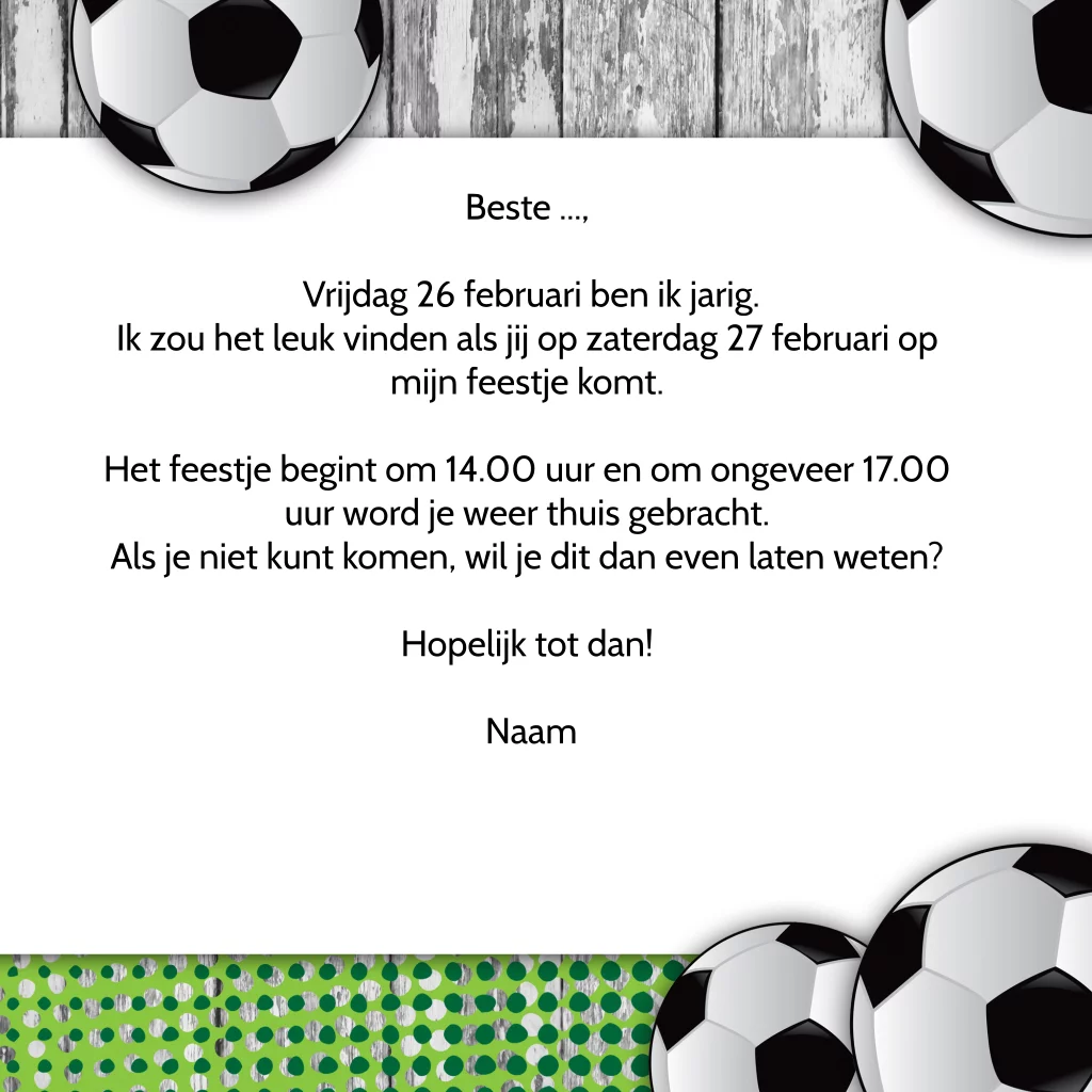 Fotokaart uitnodiging feestje jongen foto met voetbal thema. Kinderfeestje jongen.