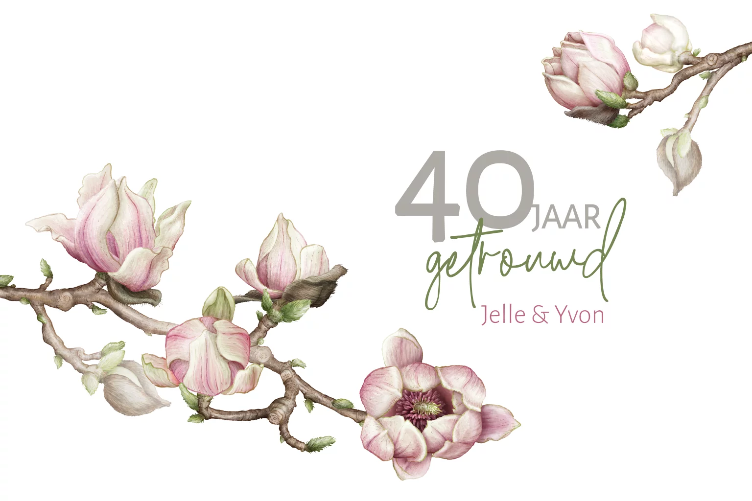 Jubileum uitnodiging 40 jaar getrouwd met magnolia