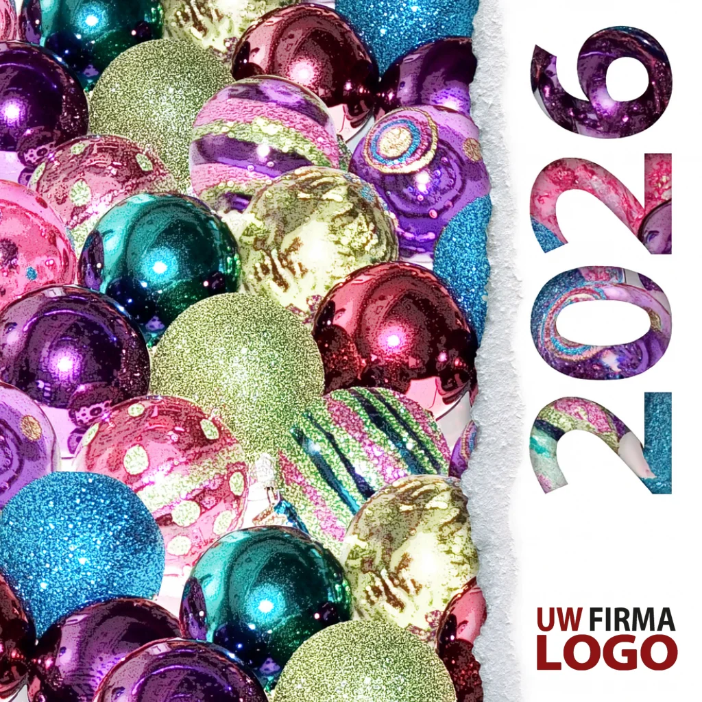 Kerstkaart met kleurrijke kerstballen en ruimte voor eigen logo