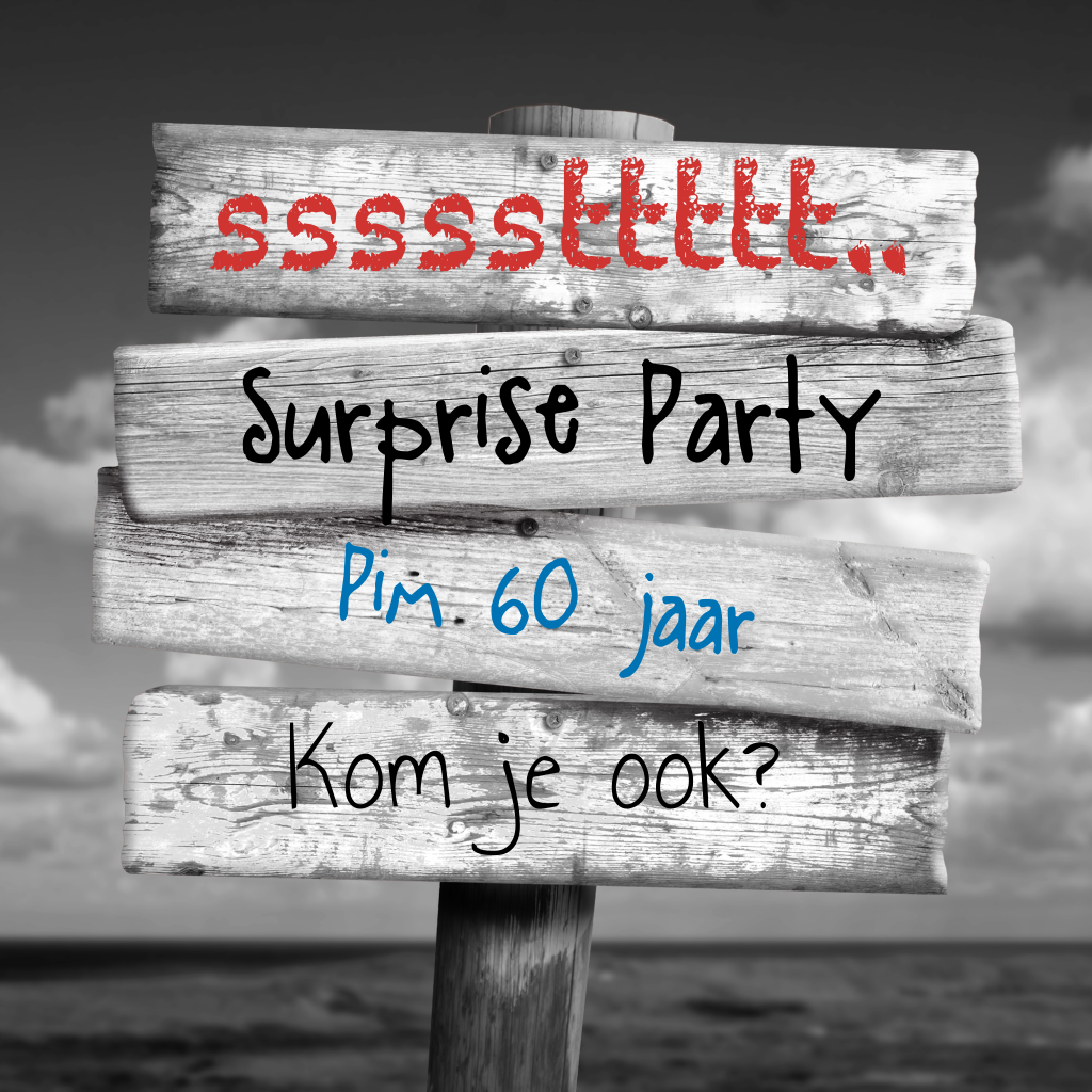 Uitnodigingskaart surprise party 60 jaar voor een verjaardag met houten bord.