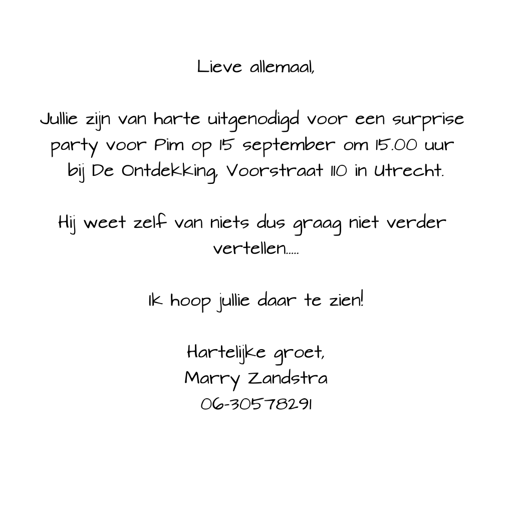 Uitnodiging surprise party zwart wit met houten bord