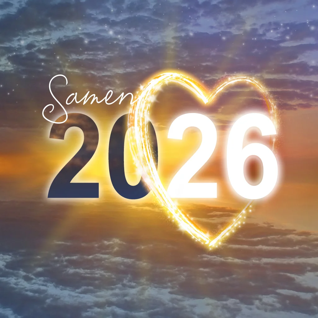 Een sfeervolle kerstkaart met 2026 in een groot lichtgevend hart in de wolken pas het ontwerp aan in onze online editor. Je kunt de kaart bestellen in 9 papiersoorten en 3 formaten: 11, 13 en 15 cm. (24738)