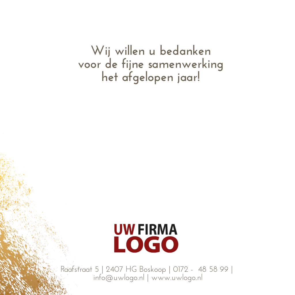 Stijlvolle wit met goudkleurige kerstkaart met sterren in een cirkel. Met ruimte voor uw bedrijfsnaam en of logo. (21750)