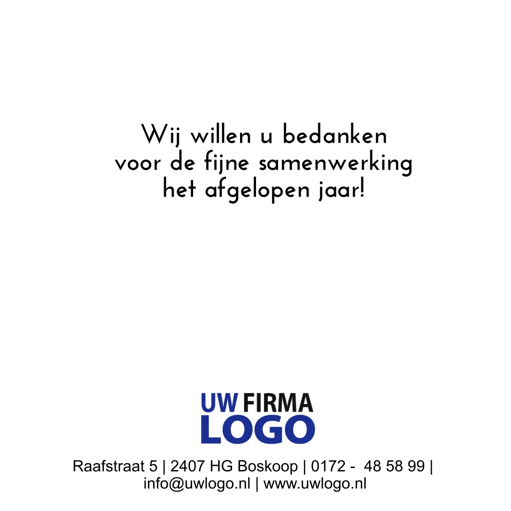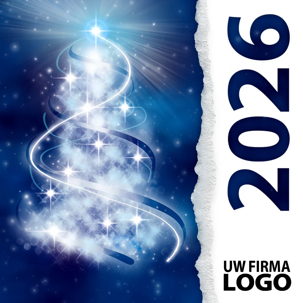 Stuur deze professionele 2026 kerstkaart naar uw relaties en personeel. Met ruimte voor uw eigen logo en/of bedrijfsnaam en bijpassende binnenkant. (7649)