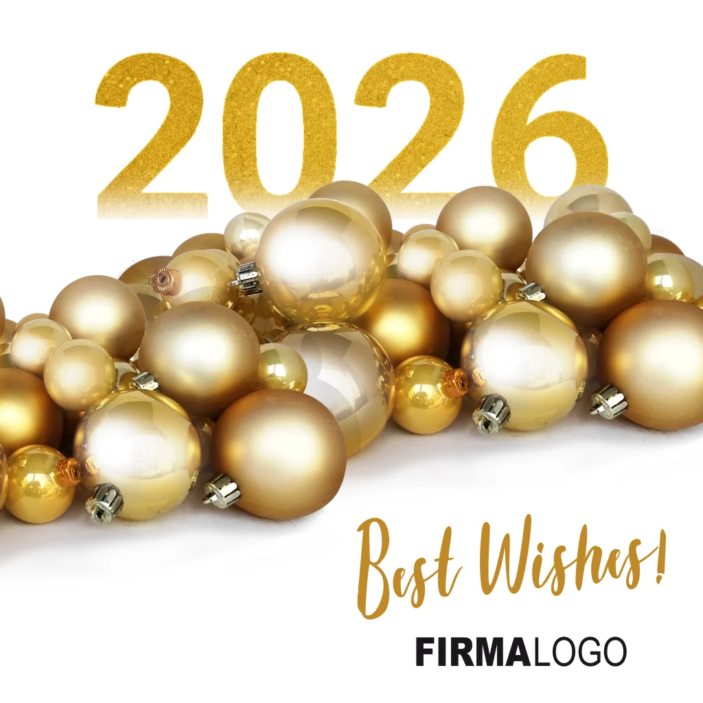 Zakelijke kerstkaart met gouden kerstballen en ruimte voor logo