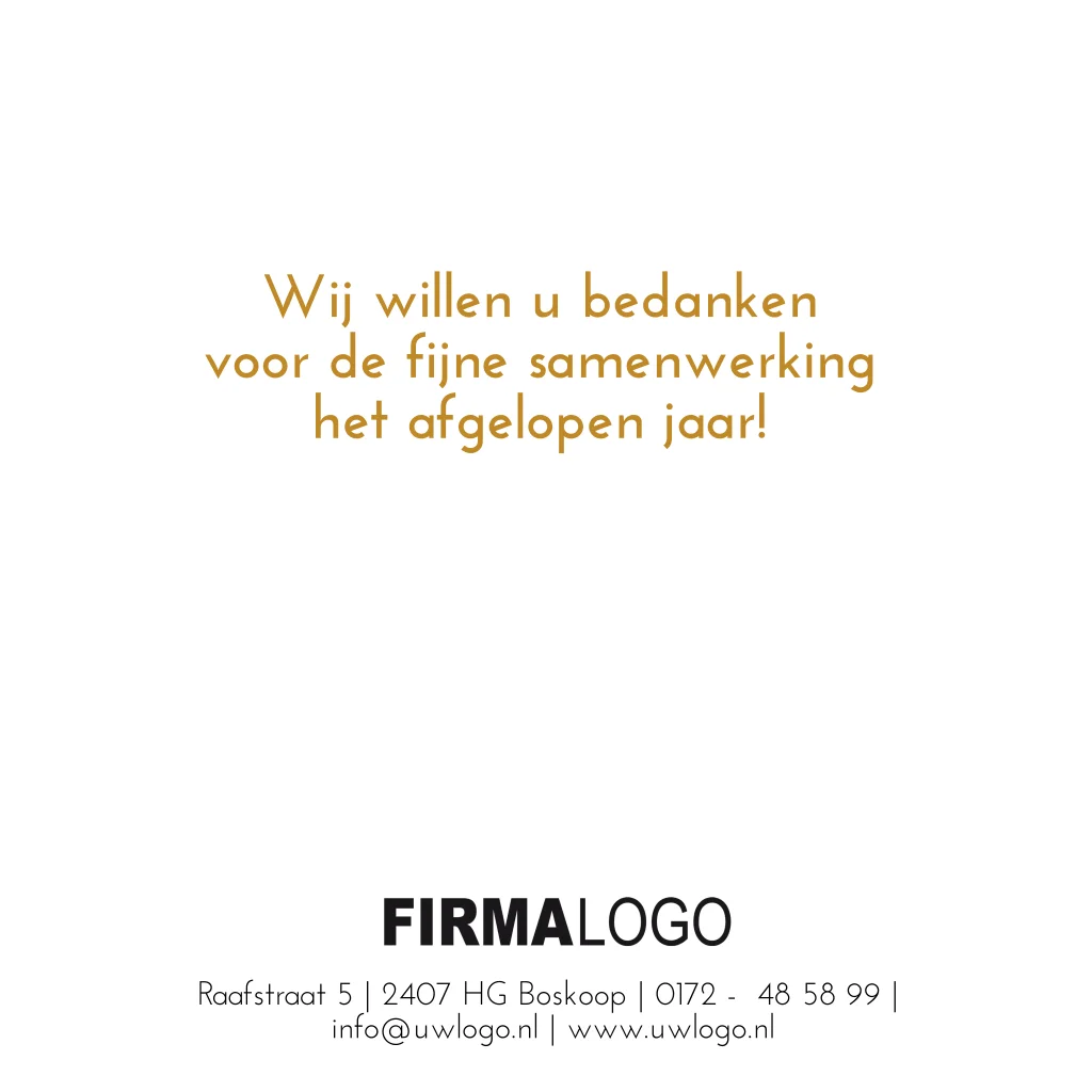 Plaats uw eigen bedrijfsnaam of logo op deze smaakvolle kerstkaart met goudkleurige details! Fijne dagen. (7654)