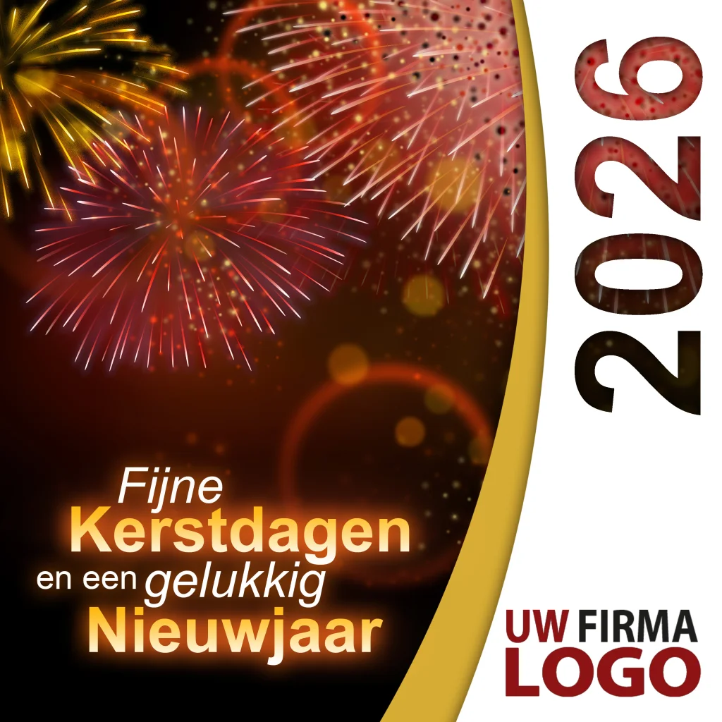 Zakelijke kerstkaart met rode vuurwerk en logo