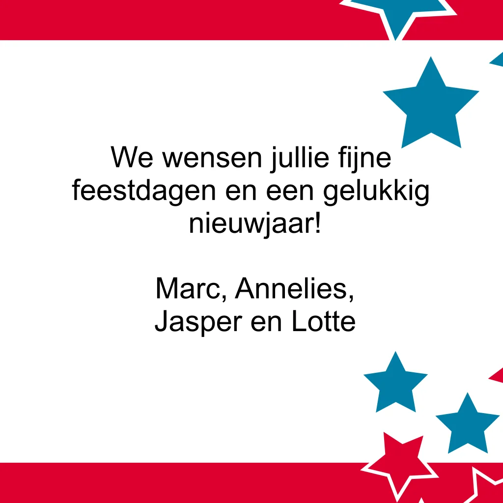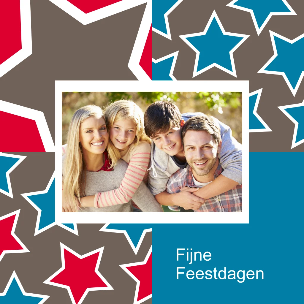 Klassieke kerstkaart met sterren in rood en groen en ruimte voor eigen foto.