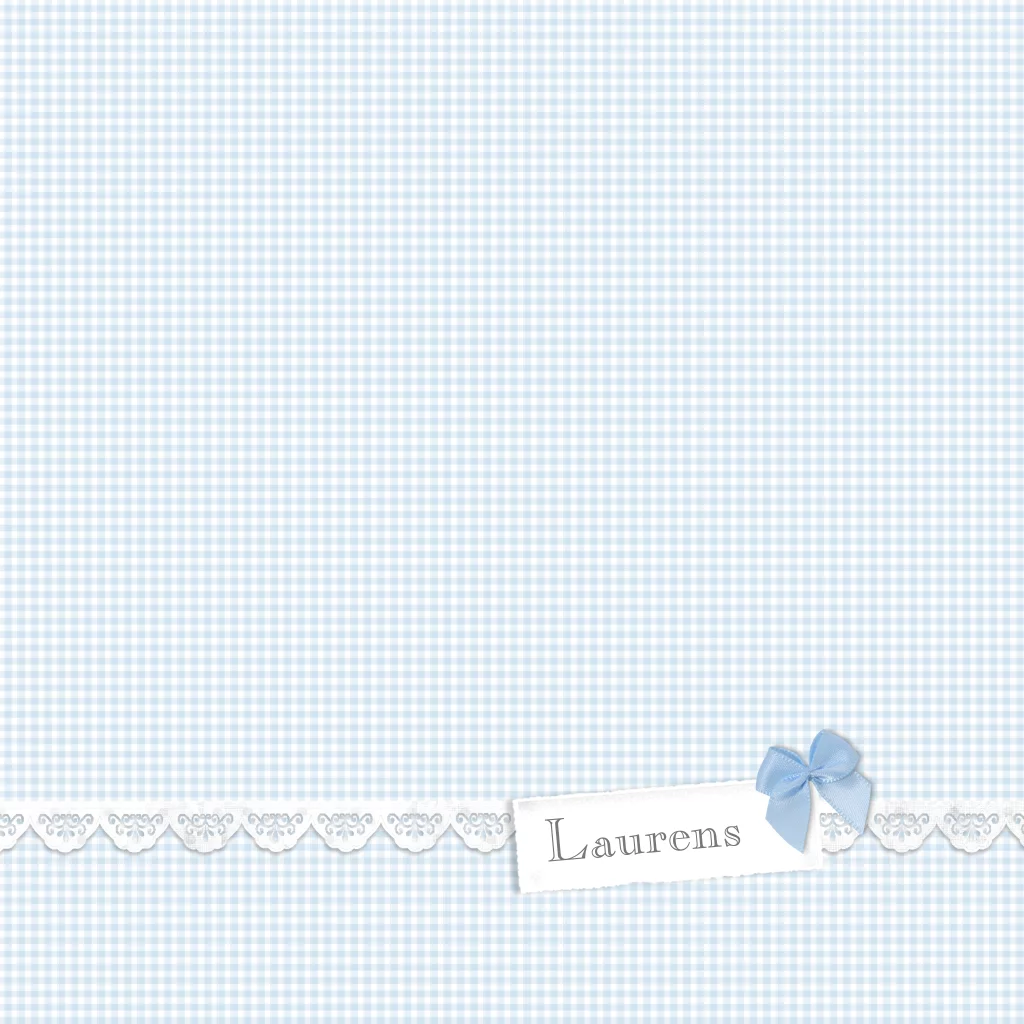 Klassiek geboortekaartje voor jongen, met ruitjespatroon, een stukje kant en echt strikje. Let op het strikje op de kaart wordt niet afgedrukt. (4858)