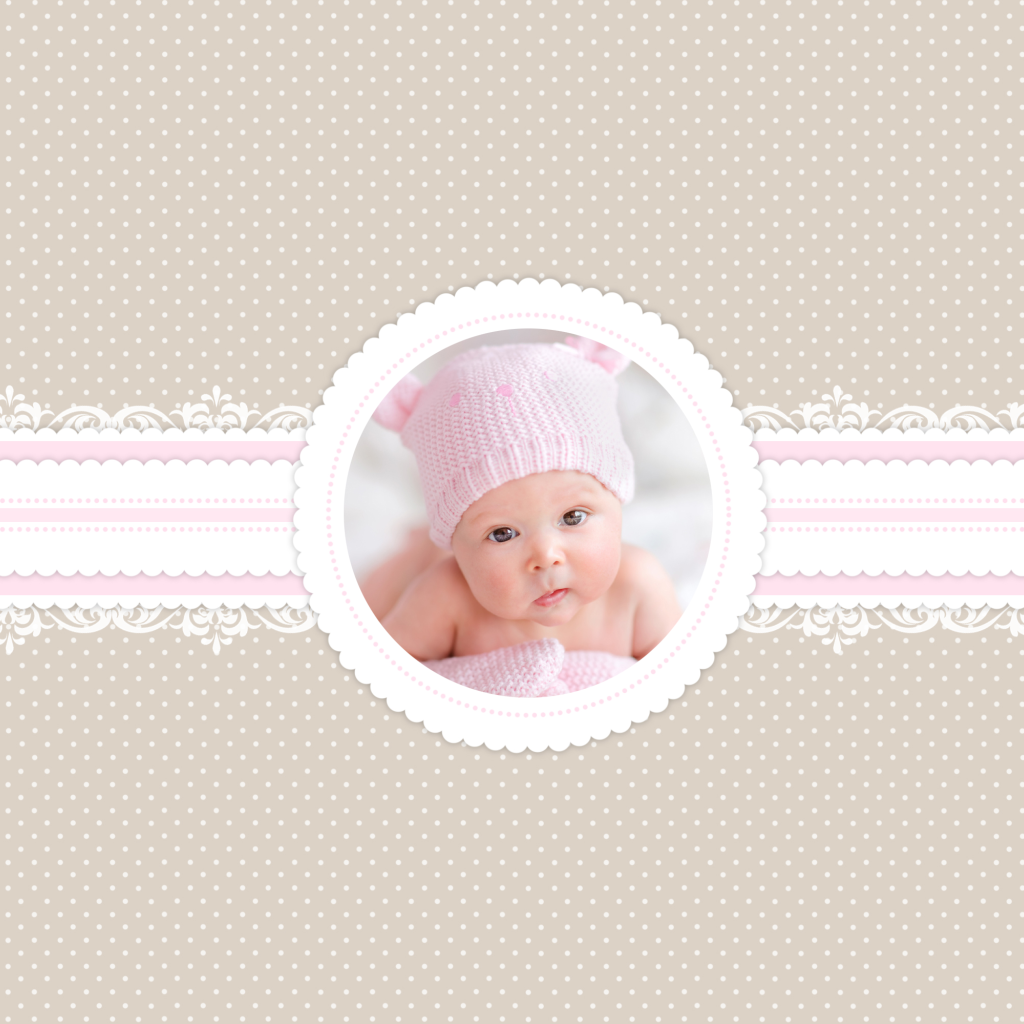 Klassieke sepia stippen geboortekaart met foto voor een meisje dochter. (4869)