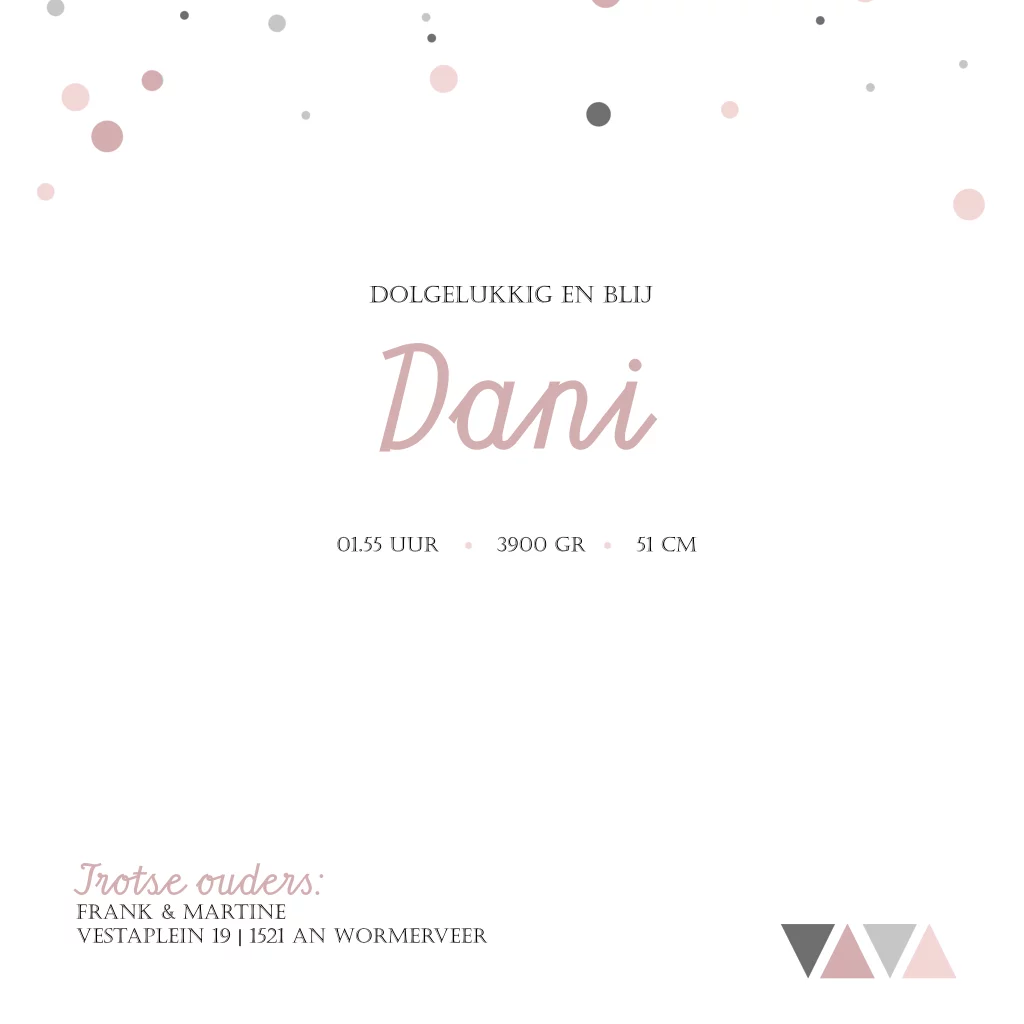 Geboortekaartje meisje geometrie roze driehoek foto