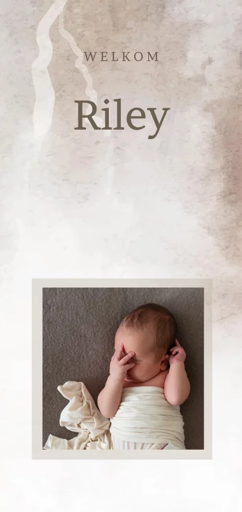 Jongens Foto geboortekaartje voor een zoon met eigen foto. Waterverf is helemaal hip en foto frame van kleur te veranderen. (21904)