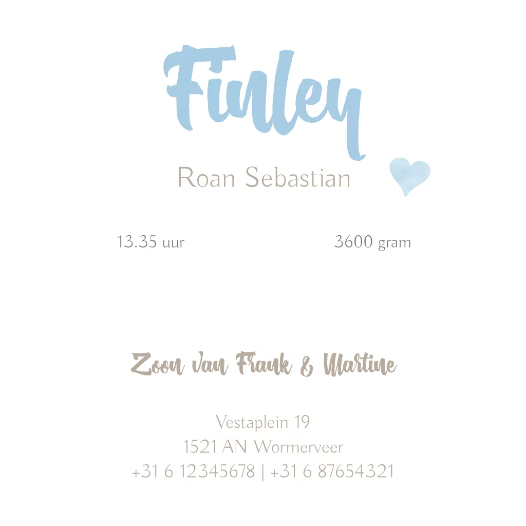 Geboortekaartje jongen met blauw waterverf en gouden hartje