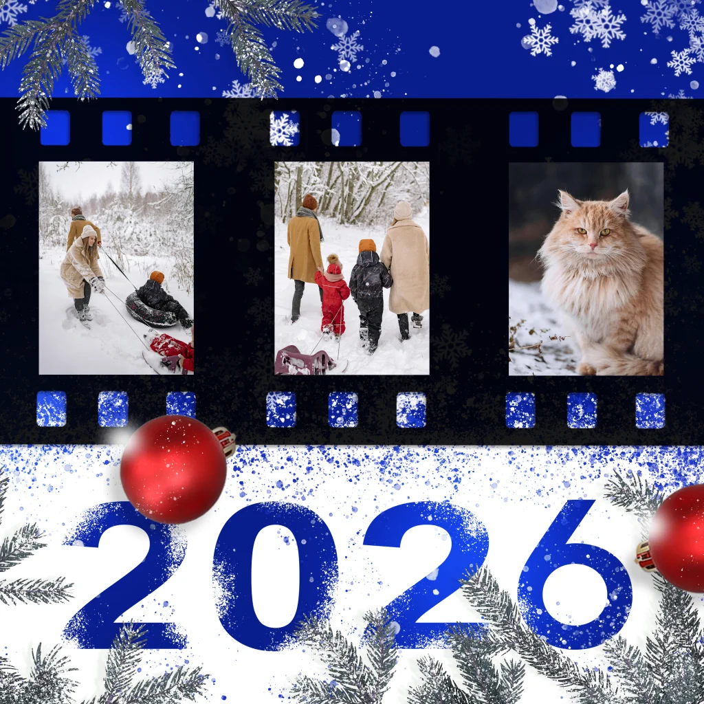 Een vrolijke kerstkaart met een 35mm fotoband waarvan je de foto's kan vervangen. Fijne feestdagen! (30329)