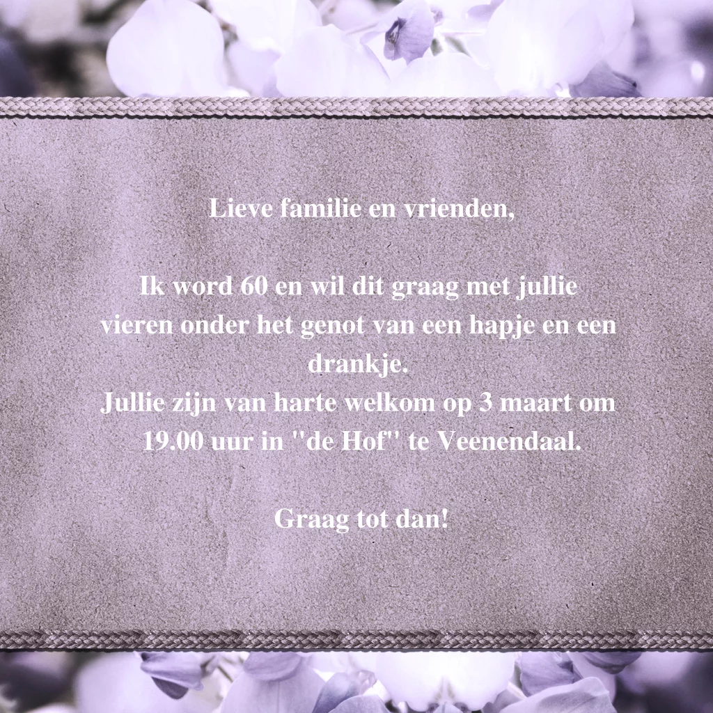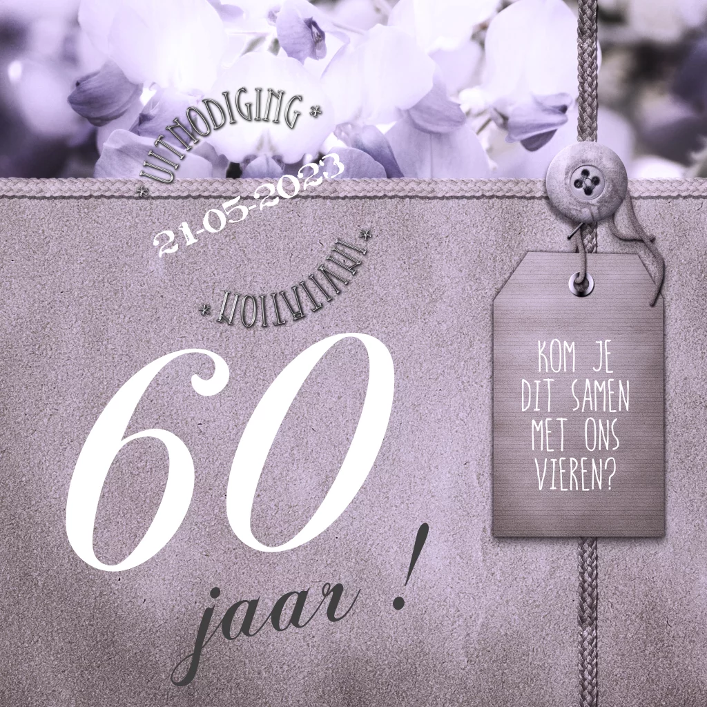 60 jaar verjaardagsfeest uitnodigingskaart met paarse bloemen (2912)