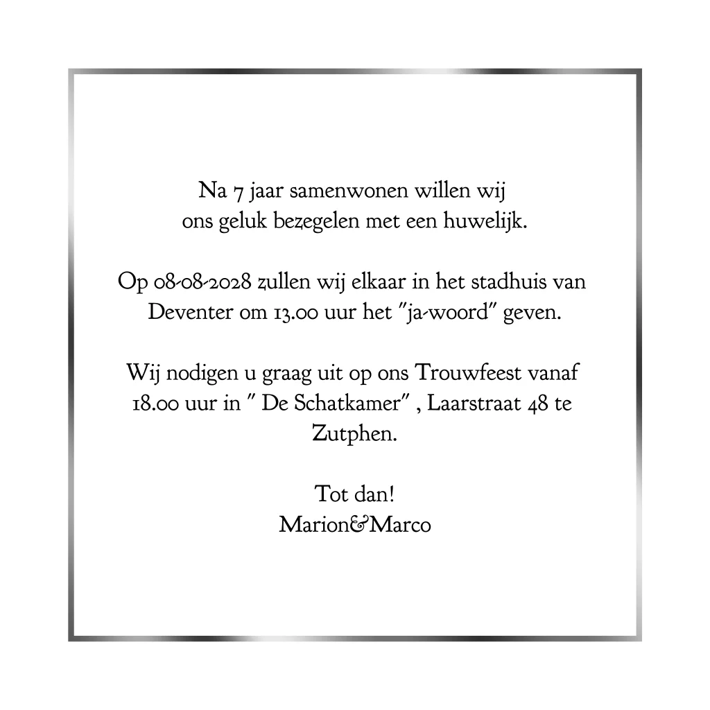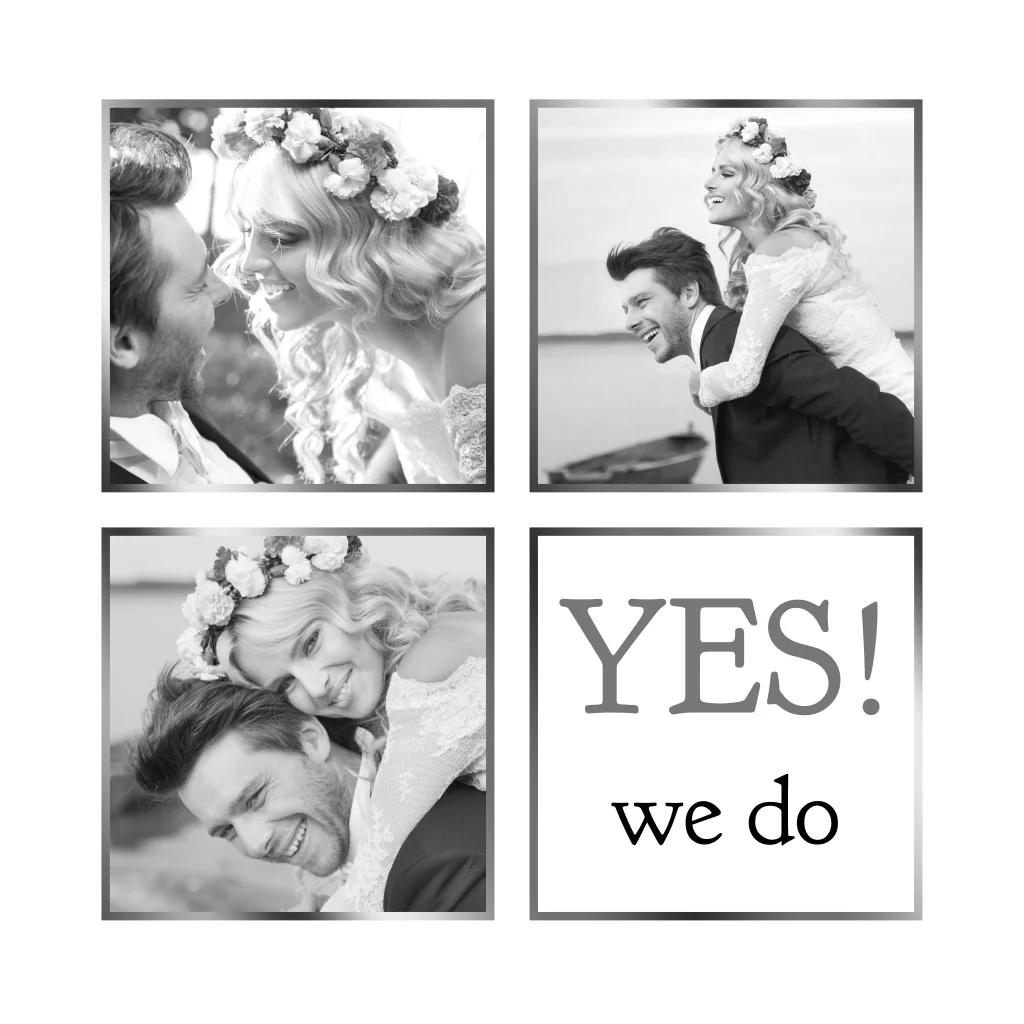 Een moderne trouwkaart met 3 vakken voor foto’s of tekst. Met bijpassende binnenzijde. (6548)