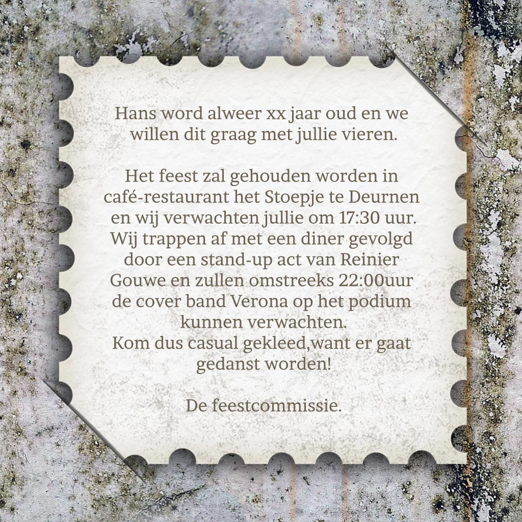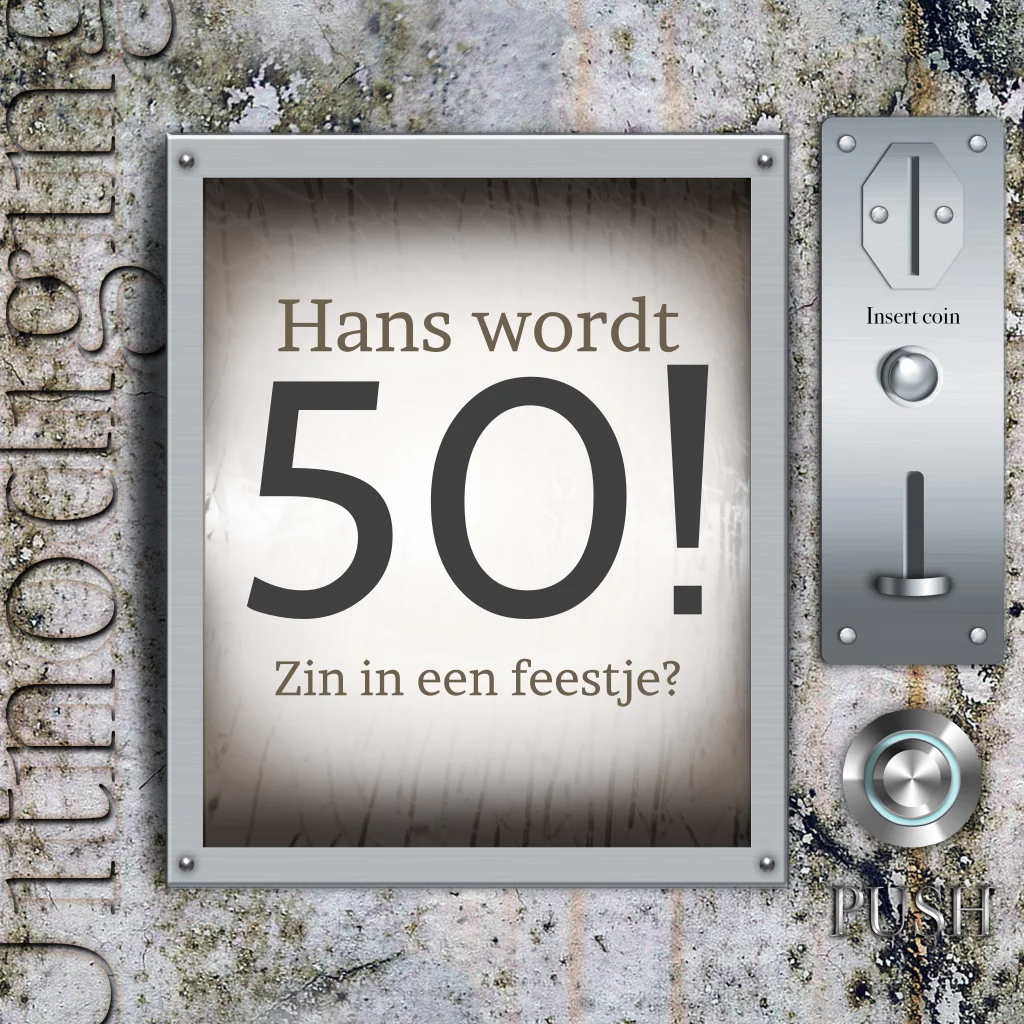 Uitnodiging voor een 50e verjaardag met draaiglas en stenen achtergrond. (4417)