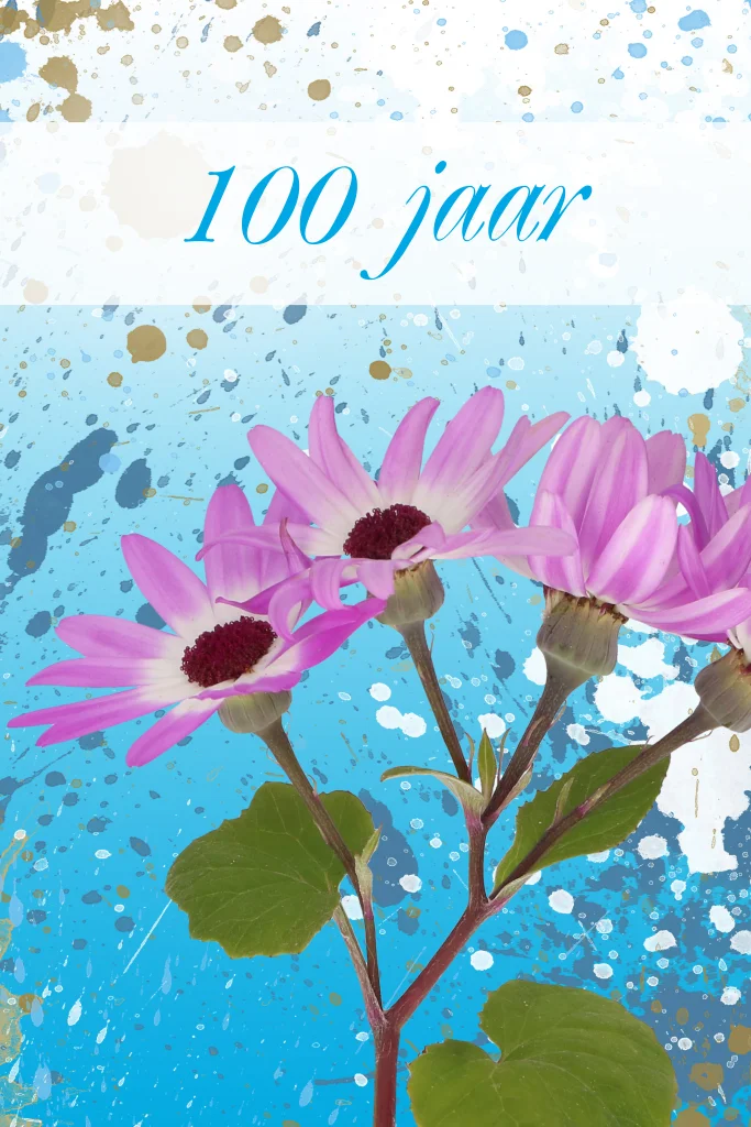 Uitnodigingskaart 100e verjaardag feest bloemen