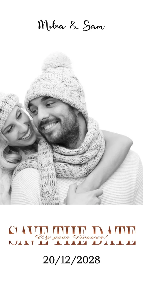 Een mooie save the date kaart met foto en koperen elementen die je kan schalen en schuiven. (7971)