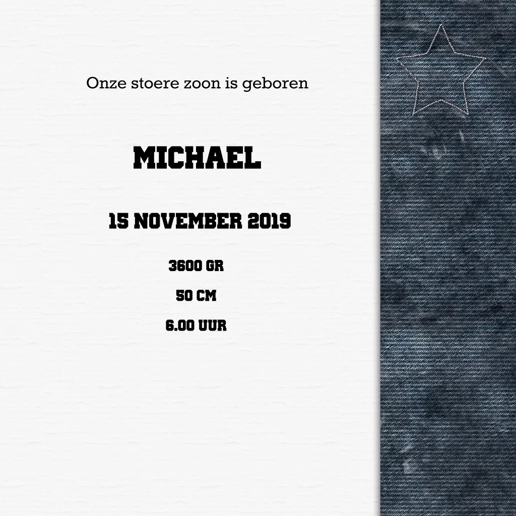 Jongens geboortekaartje denim met ster en ruitjes