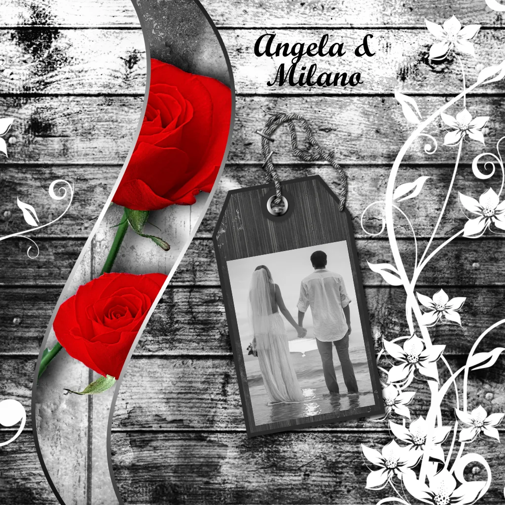 Retro trouwkaart met rode rozen roos zwart wit. (1548)