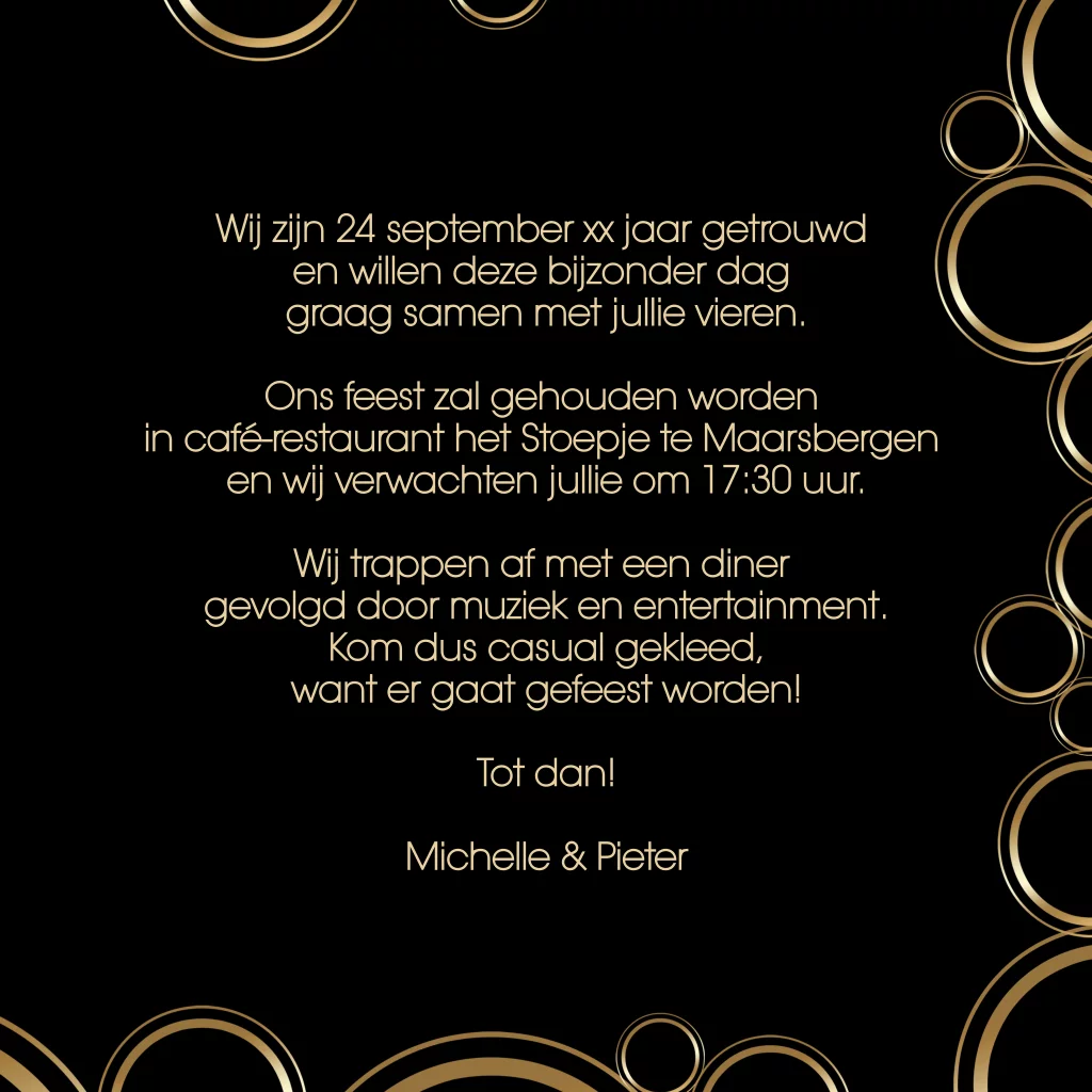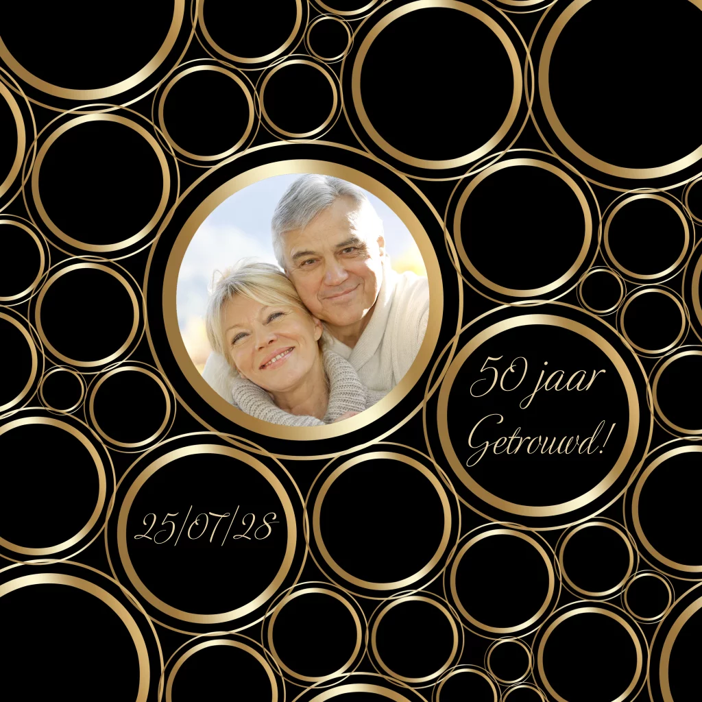 Uitnodiging 50 jaar getrouwd met goudlook cirkels en ruimte voor een eigen foto. (23809)