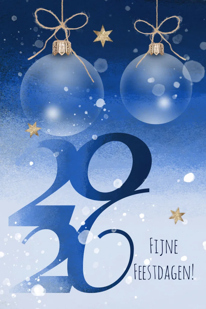 Een vrolijke winterse kaart met 2 doorzichtige kerstballen op een blauwe achtergrond van waterverf. (24366)