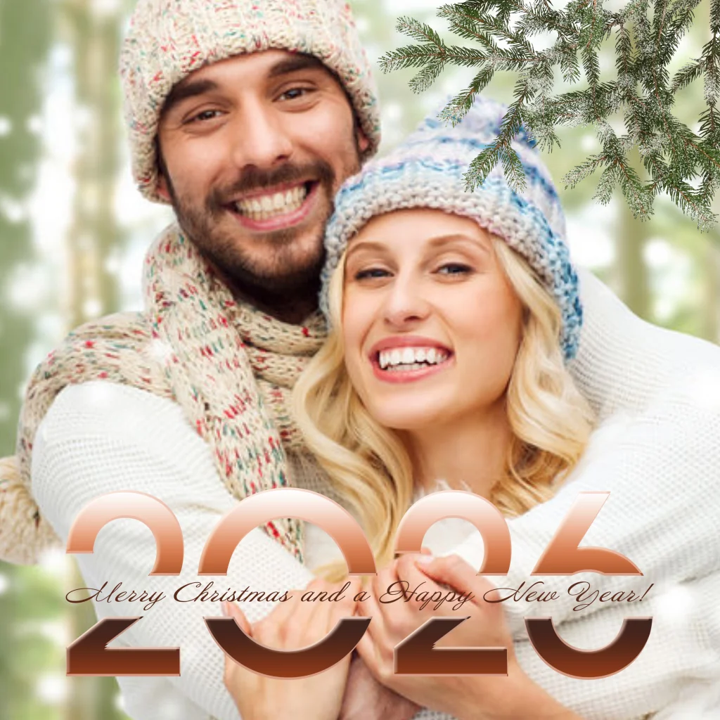 Foto kerstkaart. Vervang de achtergrondfoto en plaats het jaartal op een plek waar deze duidelijk zichtbaar is. (7862)