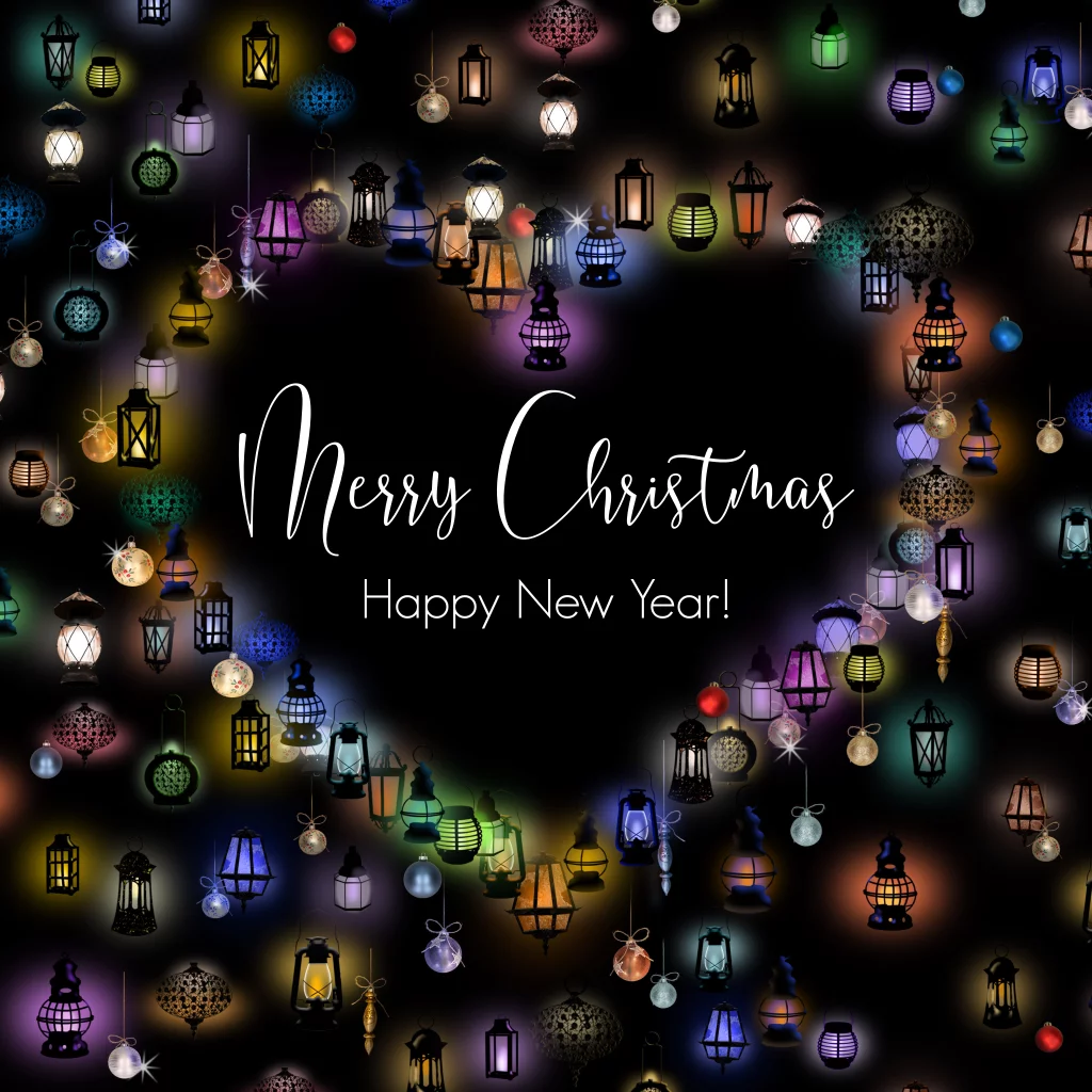 Feestelijke kerstkaart met een hart gevormd door lantarentjes. (24300)