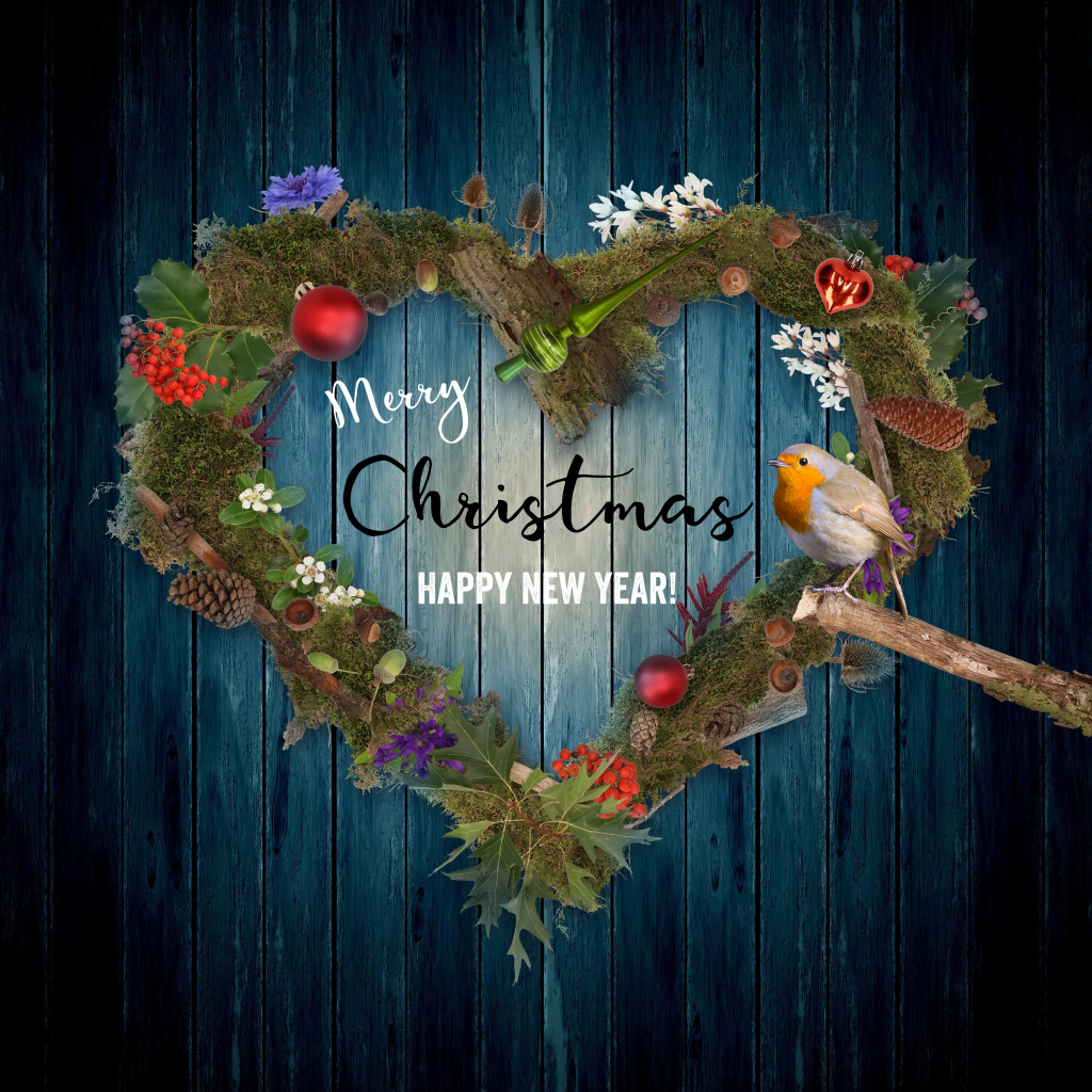 Kerstkaart sfeervolle feestdagen hart van bloemen en mos