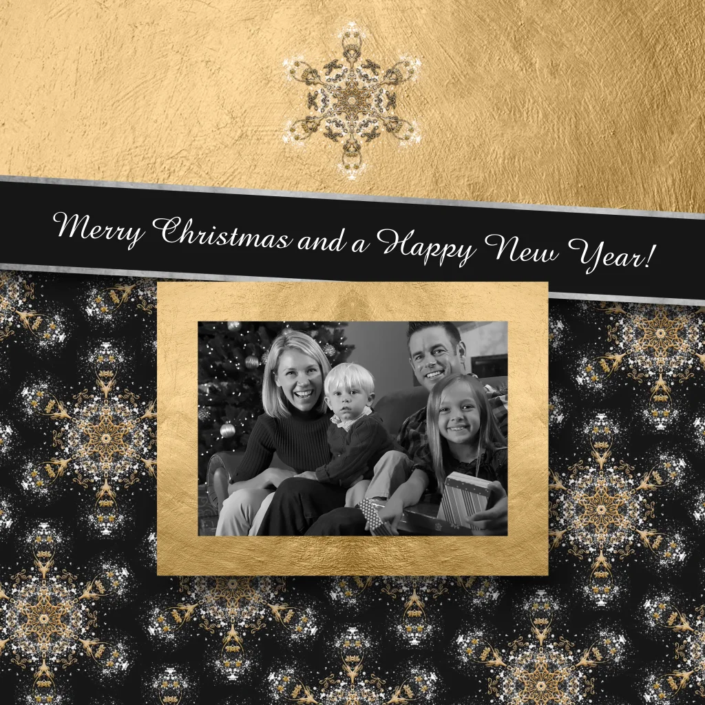 Kerstkaart stijlvolle feestdagen goudlook fotolijst