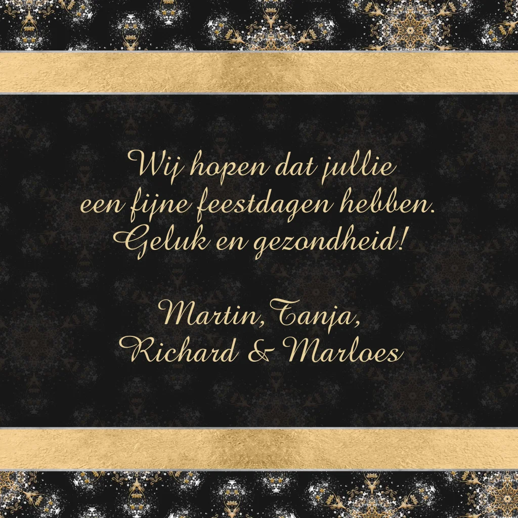 Een mooie stijlvolle kerstkaart met goudlook print en een ijskristal patroon. (21795)