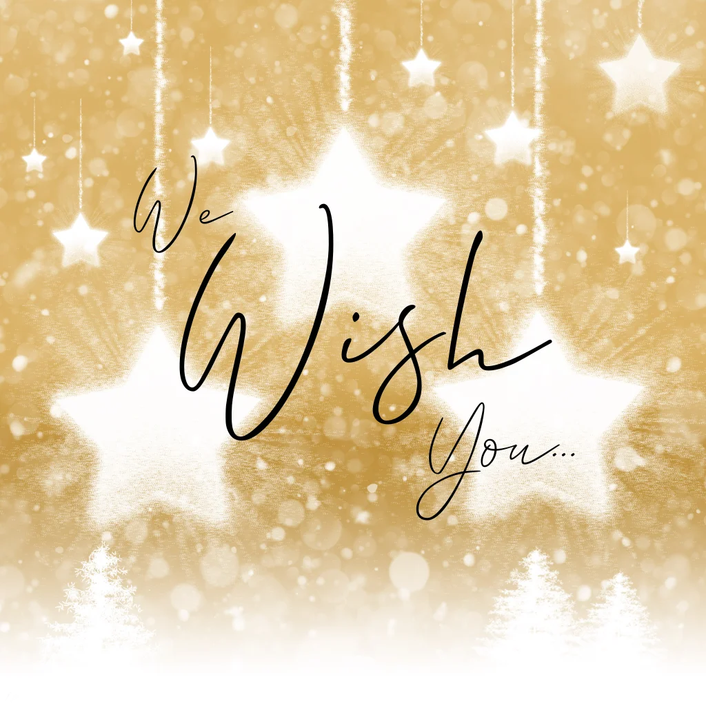 Een vrolijke kerstkaartje met vallende sterren en wensen voor een dierbaar persoon. (30333)
