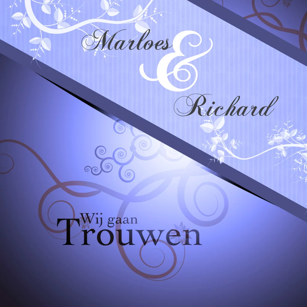 Klassieke trouwkaart met paarse achtergrond en ornamenten