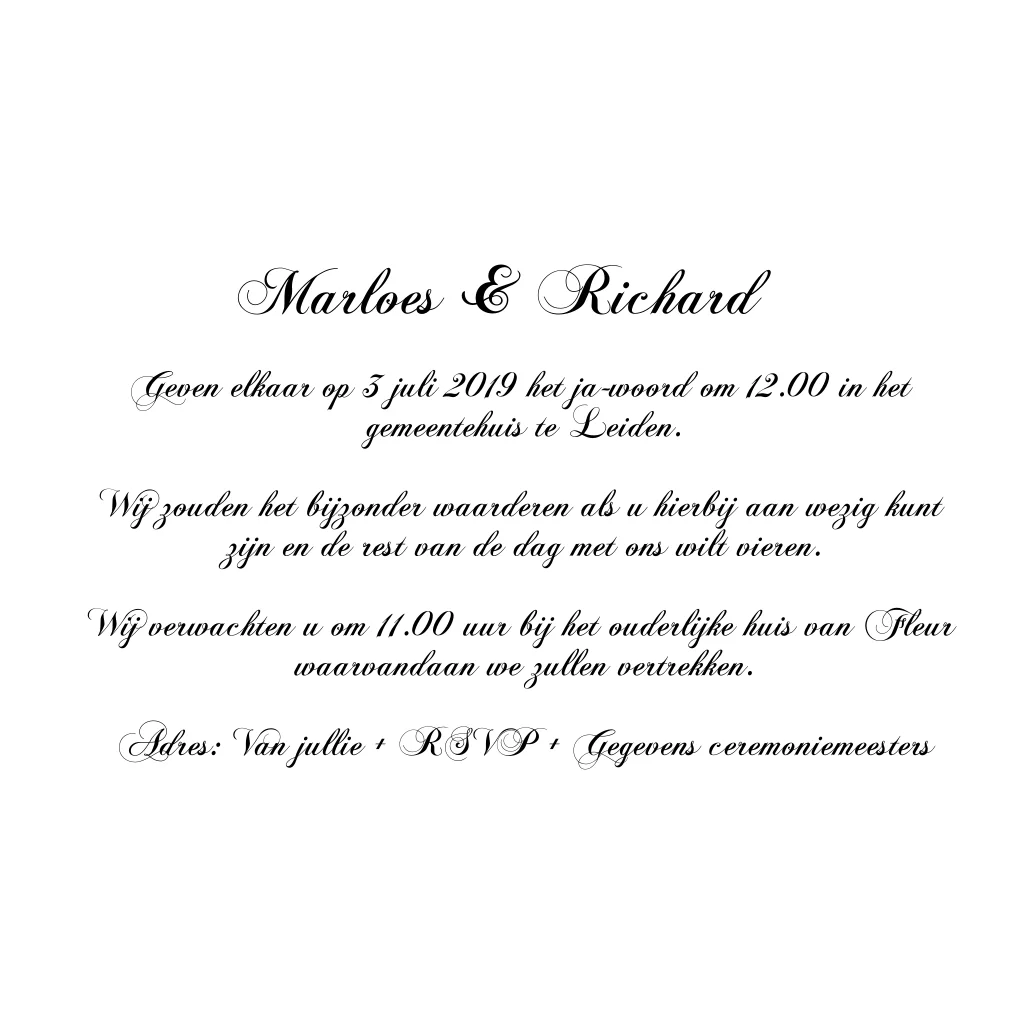 Stijlvolle paarse uitnodiging voor een huwelijksfeest of trouwfeest met witte versieringen (157)